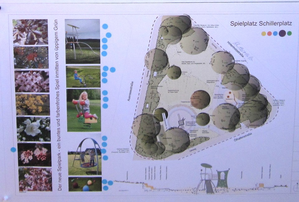 Interessierte Anwohner und Bürger konnten mit entscheiden, was für Spielangebote und Sitzmöglichkeiten errichtet werden sollen und mit welchen unterschiedlichen Pflanzen und Bäumen der Spielplatz verschönert werden kann.