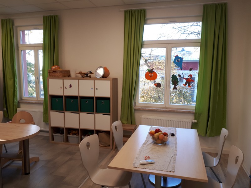 Mit einer kleinen Feier bei Pizza und Limo verabschiedeten sich die Kinder von ihren Freunden, den Mädchen und Jungen der anderen Gruppe und deren Pädagogen dann doch sehr tränenreich - aber mit den liebsten Wünschen, vor allem nach einem baldigen Wiedersehen! Natürlich wird man sich oft besuchen oder zum Spielen treffen, bis dann die zweite Gruppe ebenfalls im Haus mit einziehen kann.